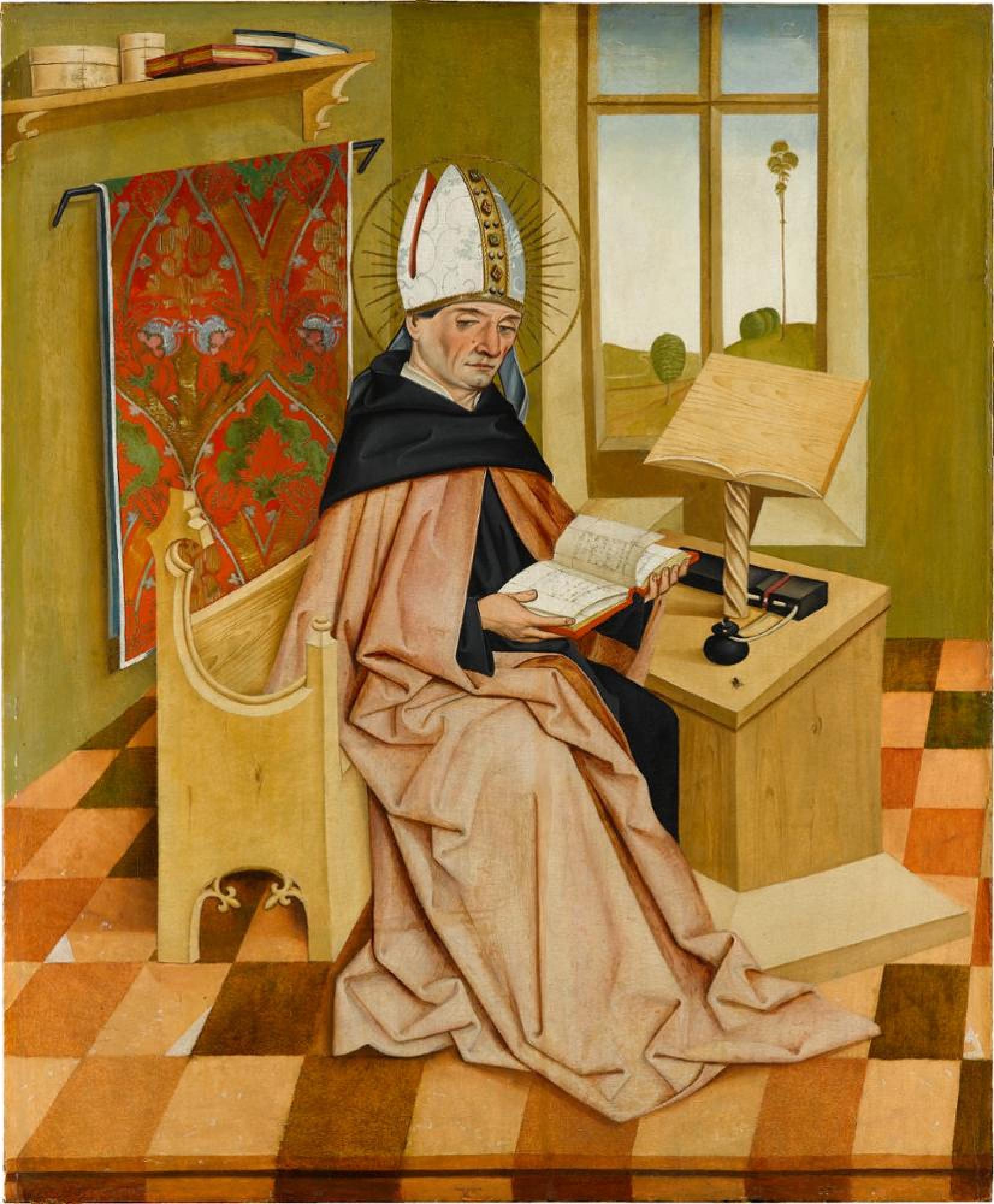 Die Darstellung der Hll. Augustinus und Ambrosius (Inv. Nr. 2017) stammen von der Außenseite eines Flügelaltars. Die zugehörigen Kirchenväter Hieronymus und Gregor der Große befinden sich ebenso wie die abgesägten Tafeln der Innenseite mit Szenen aus dem Marienleben im Kunsthandel. Als isolierte Galeriebilder teilen die beiden Heiligendarstellungen das Schicksal zahlreicher mittelalterlicher Werke. Die Lösung der Tafeln aus dem ursprünglichen Kontext wurde zumeist im 19. Jahrhundert vollzogen, was zum Verlust ihrer primären Funktion, der Veranschaulichung des Heiligengeschehens, bei gleichzeitiger Hervorhebung ihres ästhetischen Werts führte.