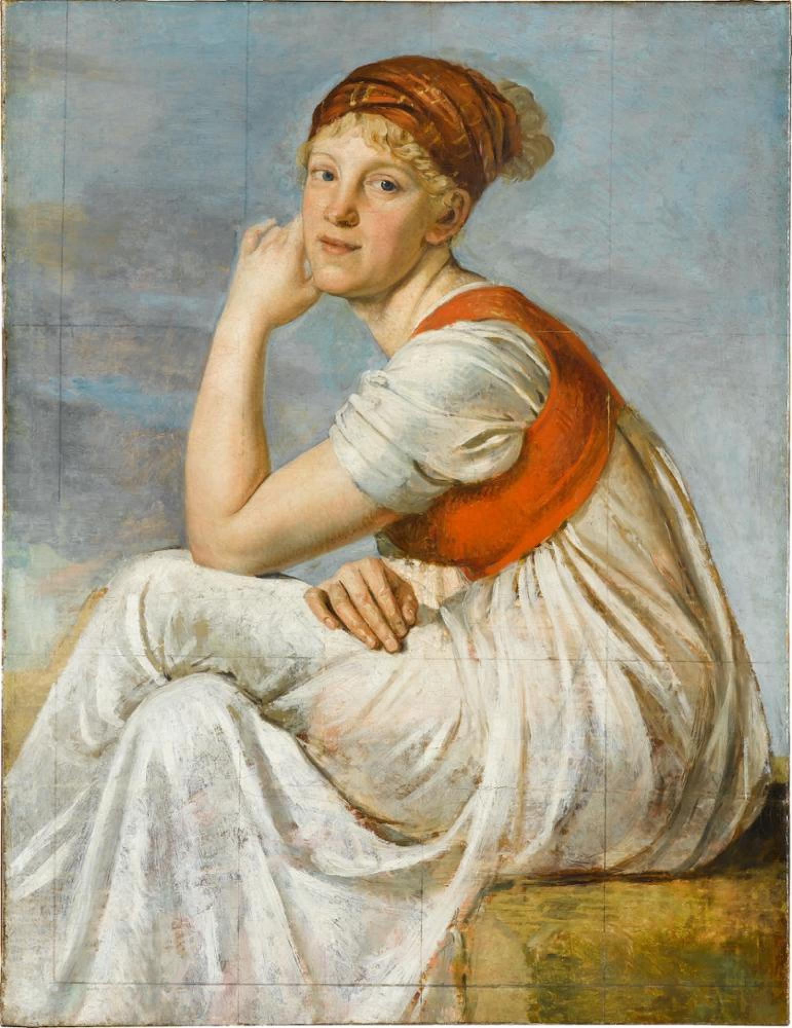 Von der ersten Frau des Bildhauers existieren zwei sehr ähnlich Bildnisse. Das in der Berliner Nationalgalerie ist vollendet, während die etwas frühere Stuttgarter Version unvollendet blieb. Schick hat das Bild unmittelbar nach seiner Rückkehr aus Paris gemalt, und der Einfluss seines Lehrers Jacques Louis David ist von der Komposition bis zur Maltechnik offensicht-lich. Die Quadrierung in feinen Bleistiftlinien rührt von der Übertragung einer Studie auf die Leinwand her.