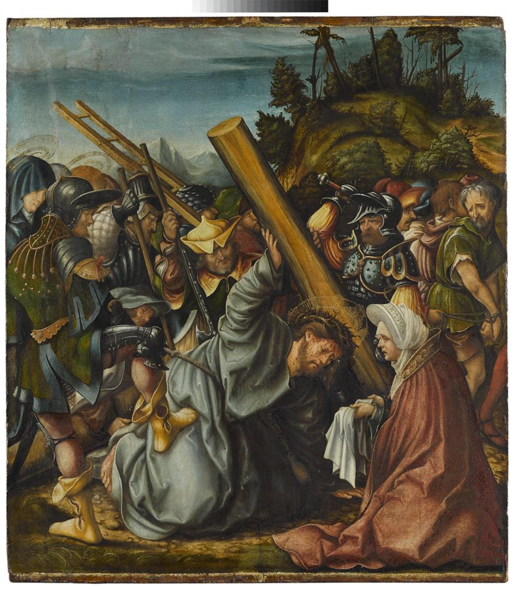 Bei den vier Passionsszenen (Inv. Nr. 1658, 1660, 1758, 1759) handelt es sich um die Außenseiten eines heute verschollenen Flügelaltars. Die Zuschreibung der Tafeln an Burgkmair ist in der Forschung umstritten. In der Tat sind in ihnen die spezifischen Stilmerkmale des Künstlers, sein Sinn für Monumentalität und Ausgewogenheit, für Repräsentanz und Pracht, nicht augenfällig präsent. Besonders in den stark bewegten figürlichen Massenszenen des jeweiligen Vordergrundes macht sich die spätgotische Tradition noch bemerkbar. Die perspektivisch angelegten Hintergründe und die harmonische, dunkeltonige Farbigkeit bezeugen jedoch ein an venezianischer Kunst geschultes Form- und Farbempfinden, was für die Autorschaft Burgkmairs spricht. Diese wird außerdem durch die enge Beziehung der Ölbergszene zum themengleichen, 1924 datierten Holzschnitt des Künstlers glaubhaft gemacht. Die Ausführung der Passionsszenen erfolgte unter starker Werkstattbeteiligung. [EW]