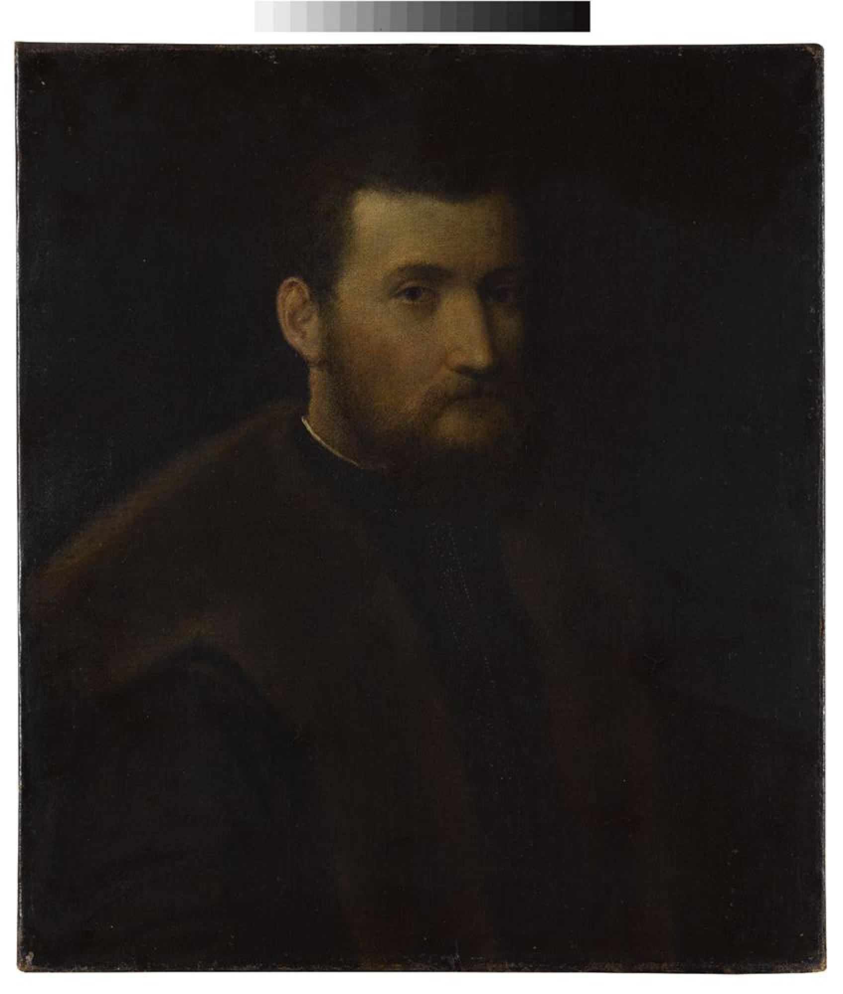 Als Dreiviertelfigur wendet sich der junge Mann an die Betrachtenden; das Haar und den Bart kurz geschnitten, wie es der Mode im 16. Jh. entsprach. Über einem dunklen Wams mit hoch geknöpftem engen Kragen trägt er eine schwarze Jacke mit breitem Pelzkragen, die auf einen gewissen Wohlstand hindeuten; weitere Zeichen, die Aufschlüsse über die Identität des Dargestellten geben könnten, fehlen. Als das Gemälde der Galerie 1844 von König Wilhelm I. geschenkt wurde, galt es als Werk von Tizian (1488/90-1576); im 20. Jh. wurde kritisch über die Autorschaft von Gianbattista Moroni (1524-1580) und Lorenzo Lotto (1480-1557) spekuliert; zwei der bemerkenswertesten lombardischen Porträtisten des 16. Jh. Auch zeigt das Antlitz des Porträtierten Ähnlichkeiten mit dem Selbstporträt von Paolo Caliari, gen. Veronese (1528-1588) aus den späten 1550er oder frühen 1560er Jahren in Sankt Petersburg (Eremitage). Das Stuttgarter Bild teilt zwar keine malerischen Gemeinsamkeiten mit den Werken beider Maler, lehnt sich aber als Porträttypus durchaus an die norditalienische Porträttradition des 16. Jh. an, zu der auch der modische Haarschnitt des Edelmannes passt.